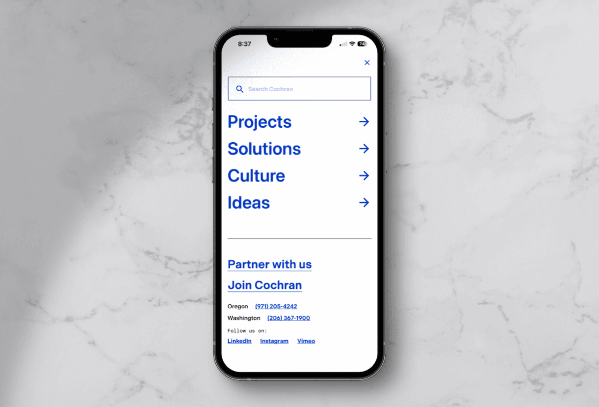 I had the opportunity to lead the redesign of Cochran Inc’s digital presence, working with a talented team to create a more modern and cohesive experience that better reflects the company’s role as the largest female-led business in the Pacific Northwest.